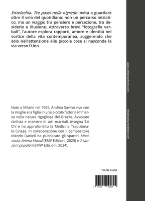 “Entelechia. Tre passi nella nigredo” invita a guardare oltre il velo del quotidiano: non un percorso iniziatico, ma un viaggio tra pensiero e percezione, tra desiderio e illusione. Attraverso brevi “fotografie verbali”, l’autore esplora rapporti, amore e identità nel vortice della vita contemporanea, suggerendo che solo nell’attenzione alle piccole cose si nasconde la via verso l’Uno.